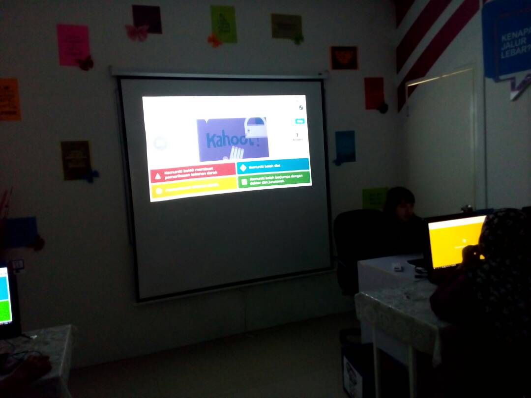 Memberikan keterangan mengenai dashboard komuniti . Peserta dikehendaki log in menggunakan id masing-masinng. Kuiz kahoot dilakukan bagi menguji kefahaman peserta .